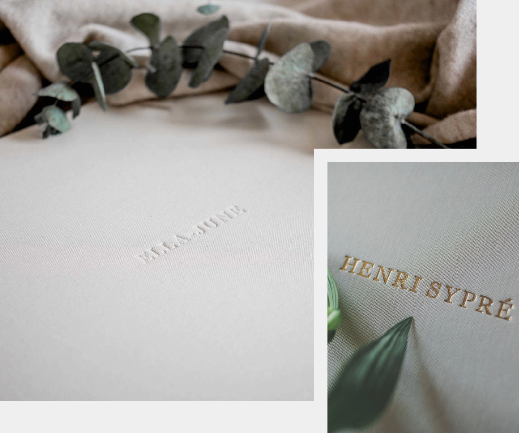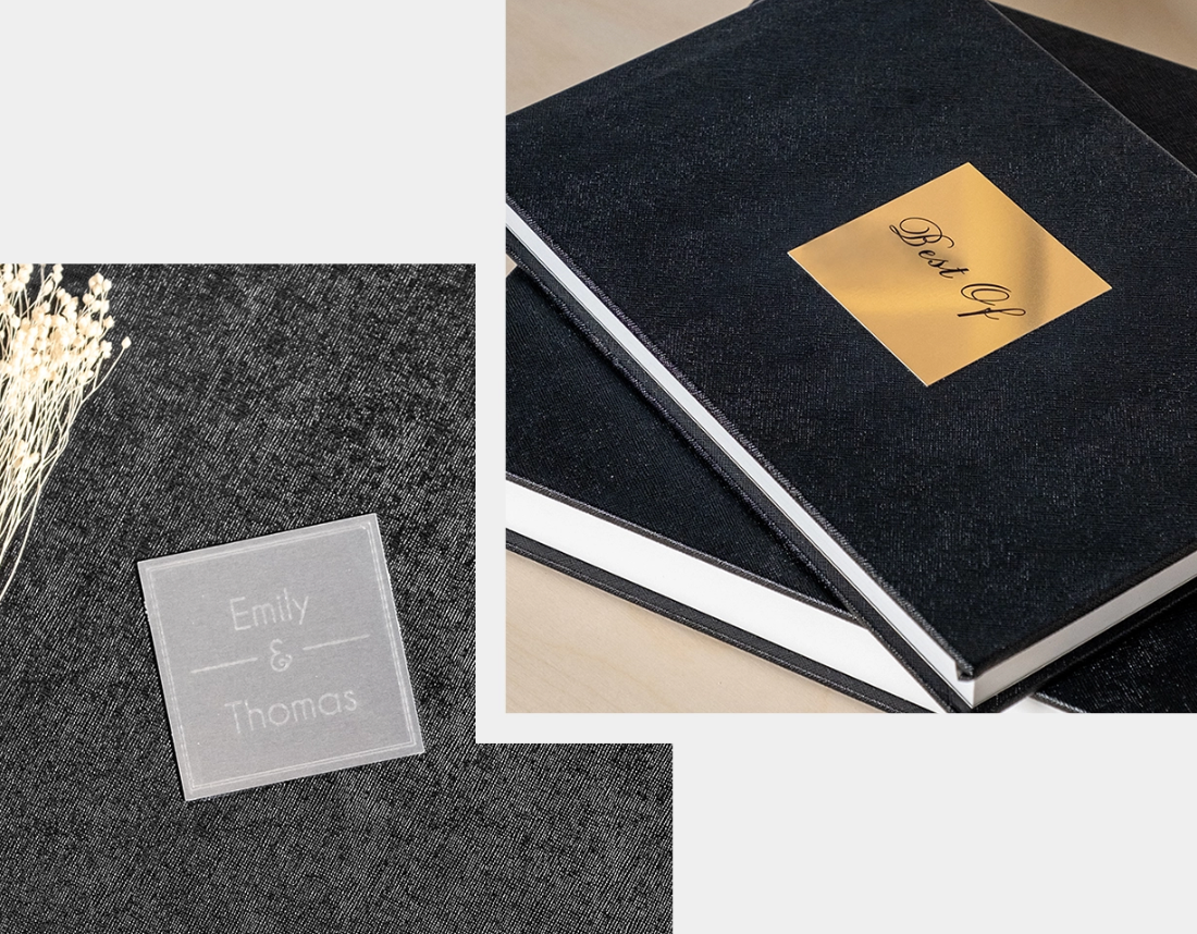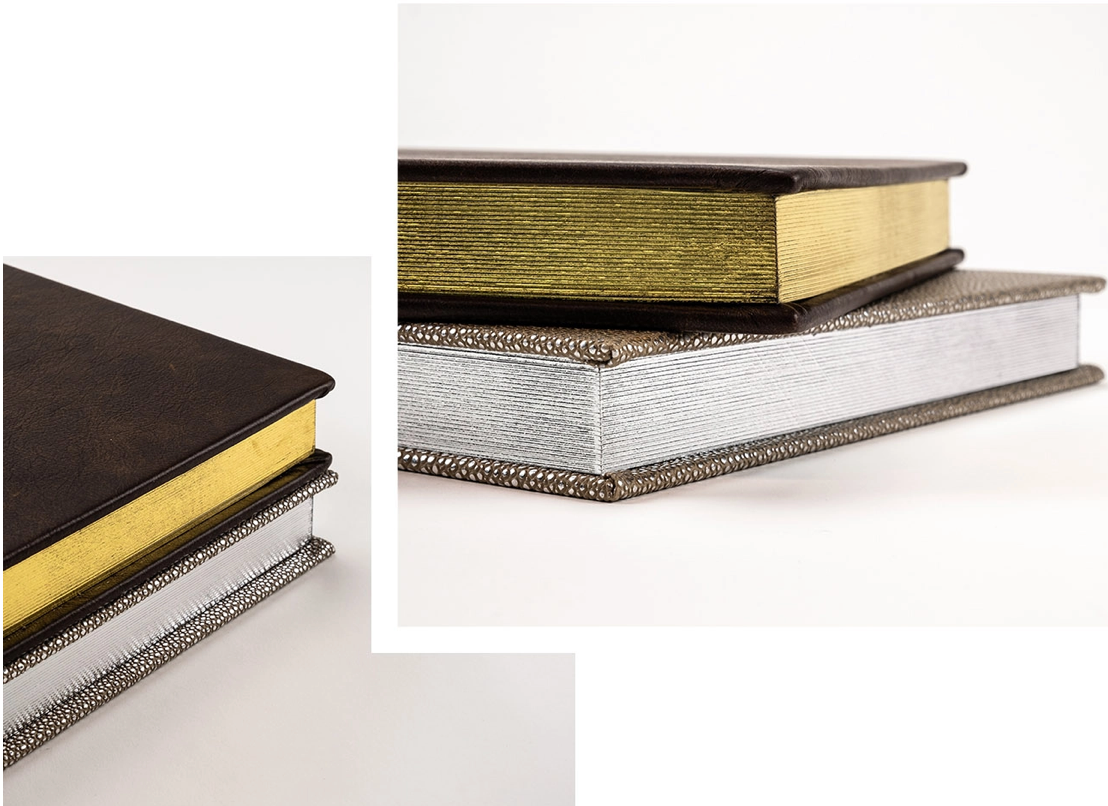 Uma personalização trabalhada por artesãos especializados, permite forrar os topos do miolo do álbum com um foil dourado ou prateado, foi desenvolvida a pensar nos clientes mais exigentes e que pretendem uma solução realmente única.